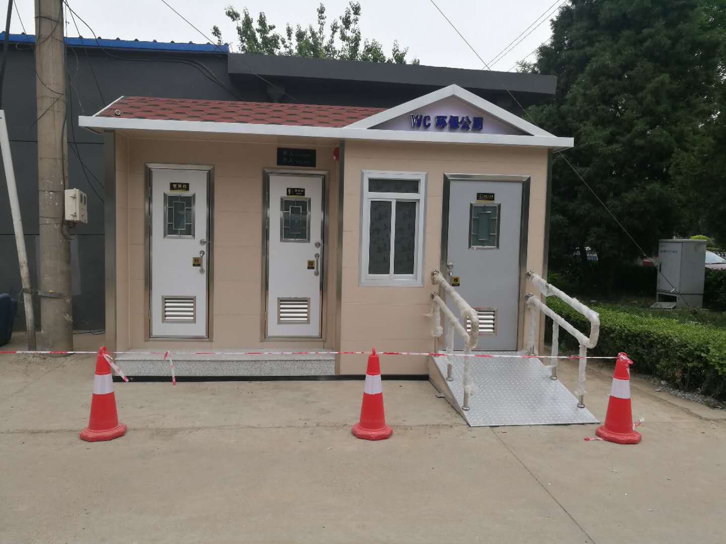 當然,移動廁所不會受到任何工作環(huán)境的限制,其外部結(jié)構(gòu)特別輕。整個顏色在搭配過程中特別合理,適合安裝在一些不同的城市街道或大型公共場所,尤其便于移動。移動廁所是由鋼焊接而成的框架結(jié)構(gòu)。通常,底部用槽鋼或工字鋼焊接,立柱用方鋼制成。在墻體的基礎(chǔ)上,安裝墻體材料,包括彩鋼板、金屬雕版、鋁塑板、防腐木等。框架式機構(gòu)可以滿足提升要求,可以移動挪威進行提升,因此被稱為移動廁所。本發(fā)明不受任何工作環(huán)境的限制,外觀結(jié)構(gòu)輕巧,配色合理,適用于城市街道、公園綠化、車站、碼頭、旅游景點、別墅區(qū)、新建住宅區(qū)、大型建筑工地、廣場、人口稠密的公共場所和繁華的商業(yè)街。移動式公廁具有可移動、可組合、便于運輸?shù)膬?yōu)點。此外,移動廁所的內(nèi)部配置高于普通固定廁所。